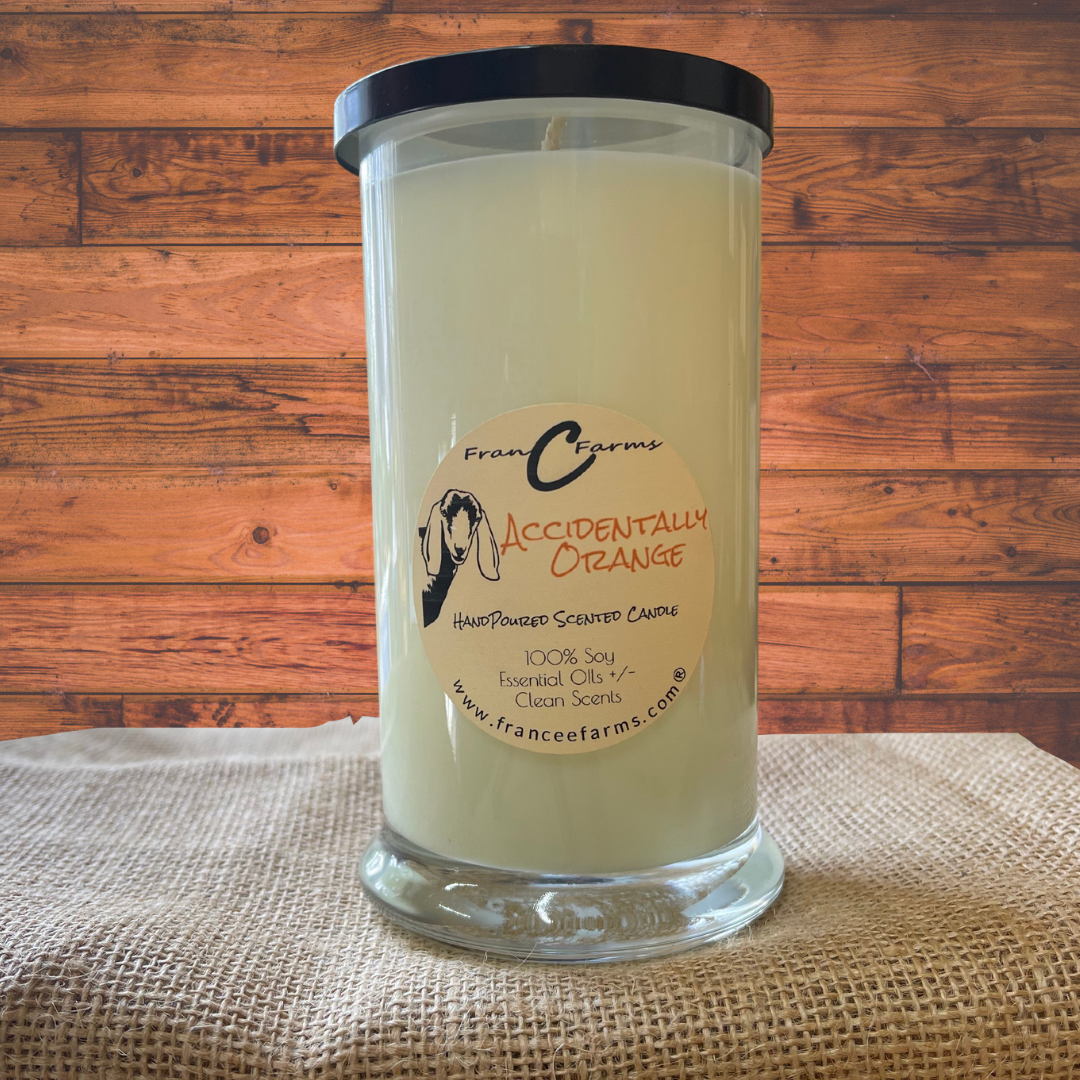This hand-poured 100% Soy Candle is a balanced floral blend. Accidentally Orange fragrance oil is sweet, delicate, and fresh. A lush fragrance for spring or summer, that has top notes of petitgrain and bergamot, middle accords of neroli and jasmine, and a light sandalwood base. This scent is sure to become one of your warm-weather favorites and is infused with natural essential oils, including bergamot and eucalyptus.