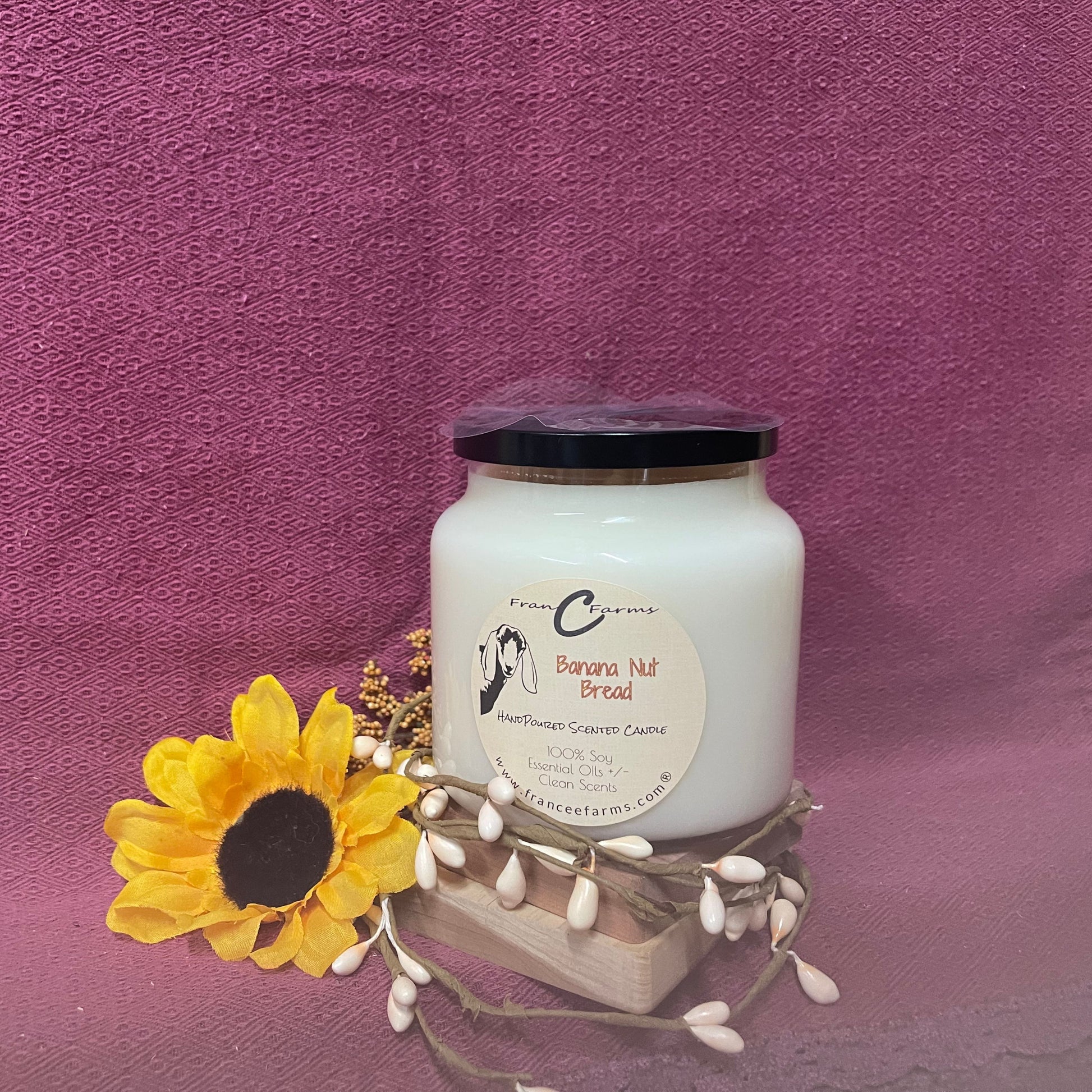 Banana Nut Bread. Pure Elegance, natural beauty. 100% Pure Soy Wax Candle scented with fragrance and/or essential oils. Our hand poured candles that are balanced to throw a clean scent while burning evenly and efficiently. This 22 Ounce candle requires a 3 hour initial burn, and will be sure to have your room smelling delicious!