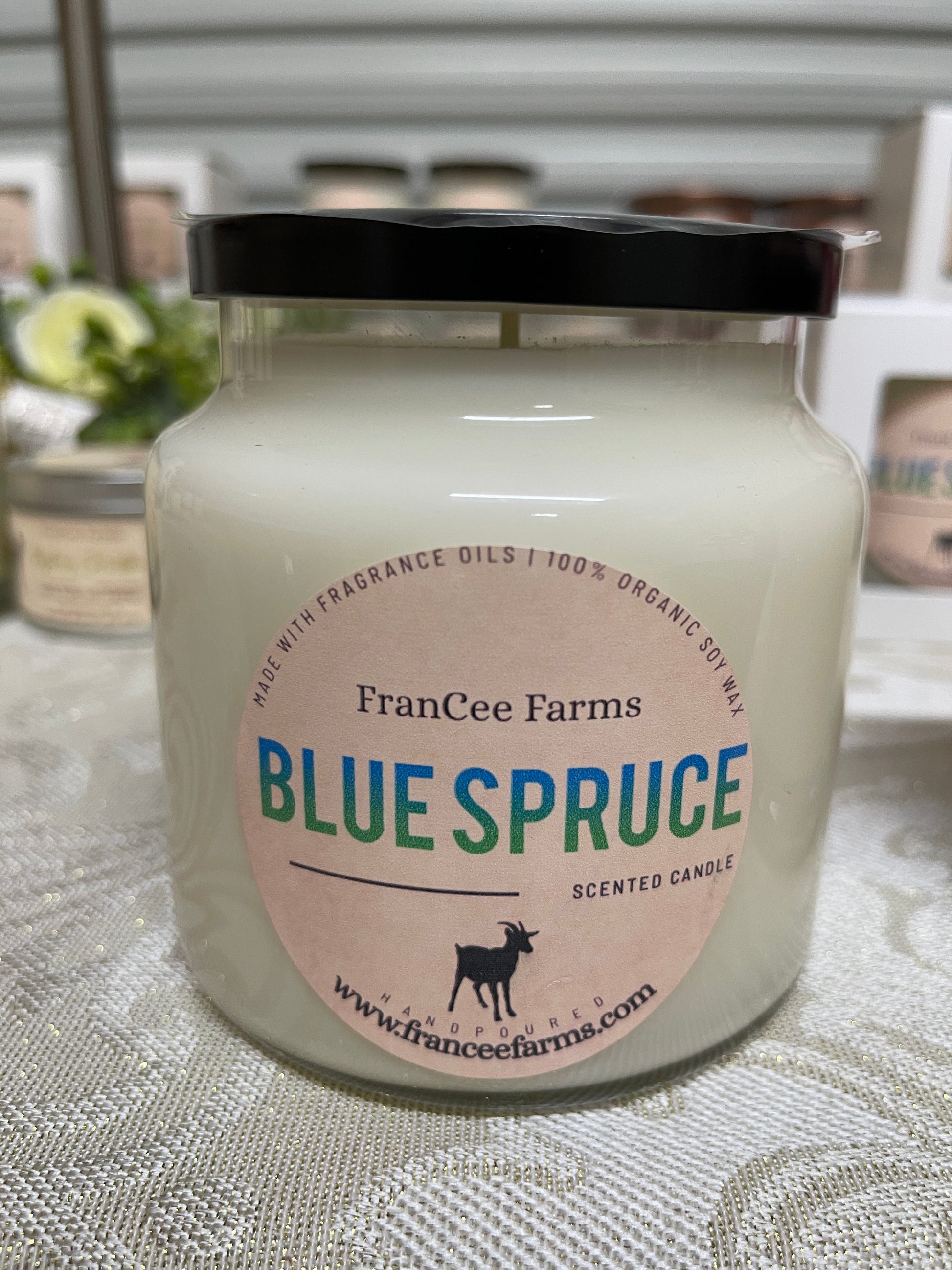 This 100% Soy Wax candle is scented with the housewarming fragrance of Blue Spruce. Tis the Season! It will fill your room with Christmas memories and will not disappoint your family or your guests. Upon an initial 3 burn, the 16 oz. candle will last approximately 100 hours.