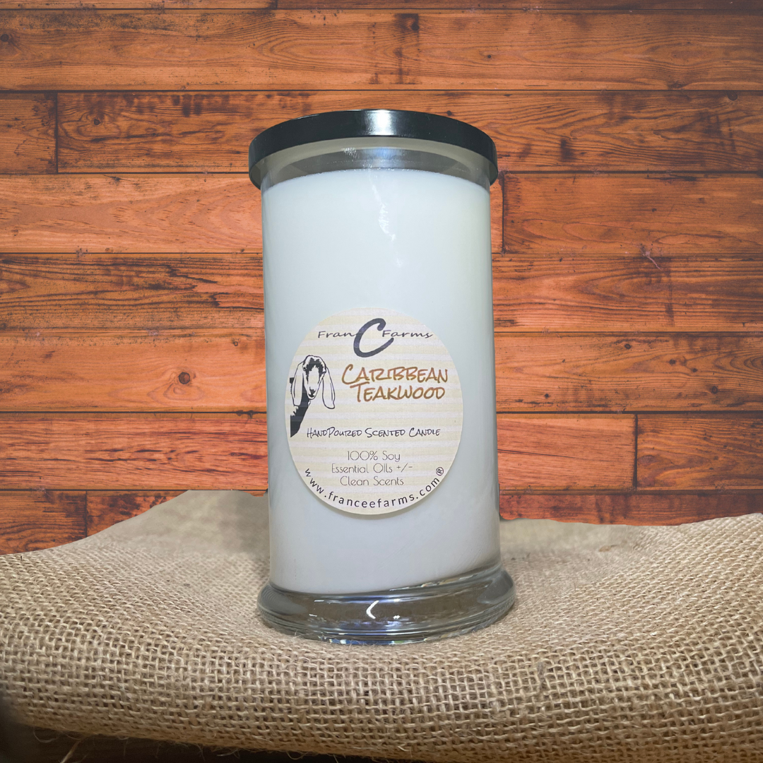 Caribbean Teakwood is a bold, complex fragrance with wide appeal. It leads with spicy top notes of allspice blended with rich leather. Middle notes of tobacco leaf and clove blend into the woody, deep base of sandalwood, amber, and peppercorn.