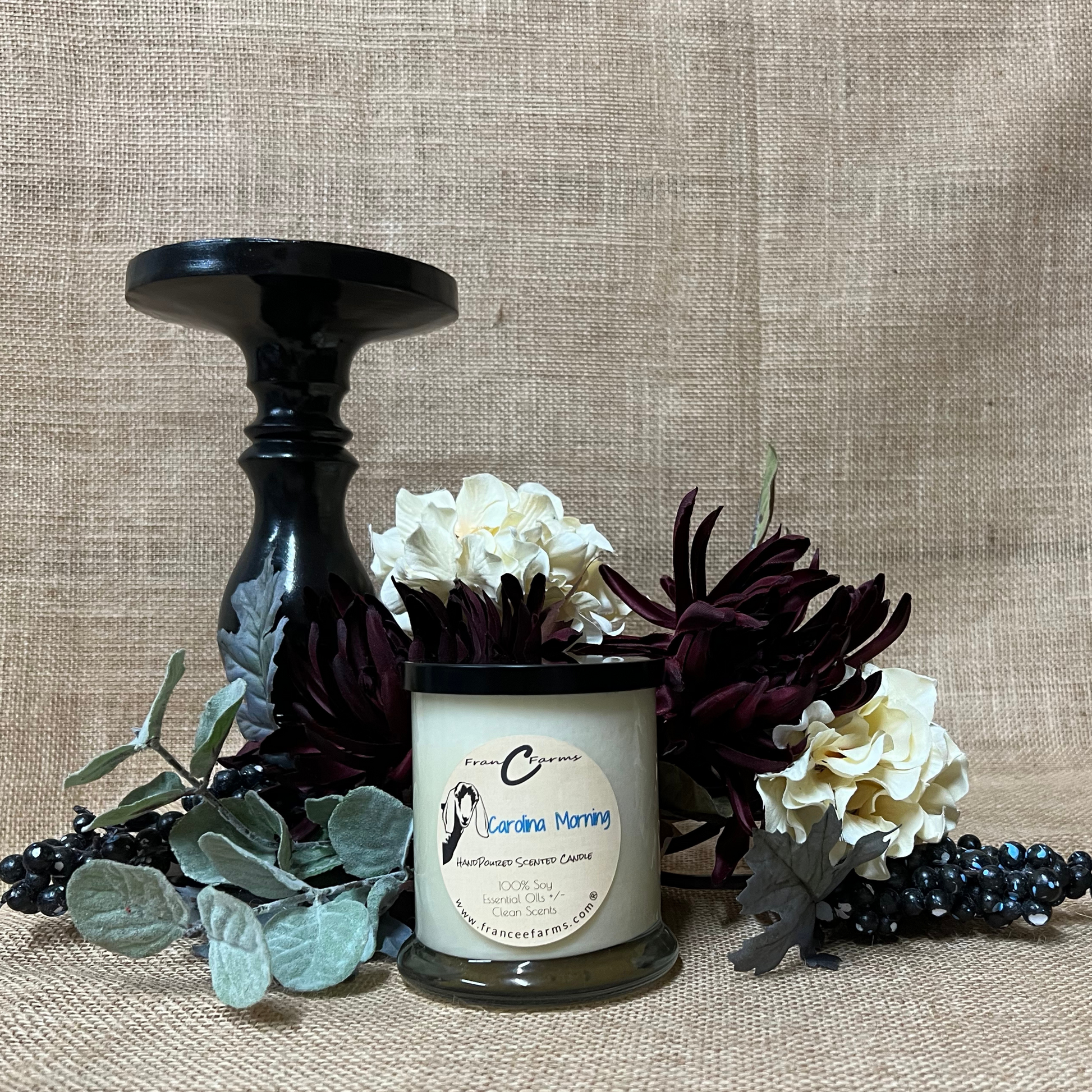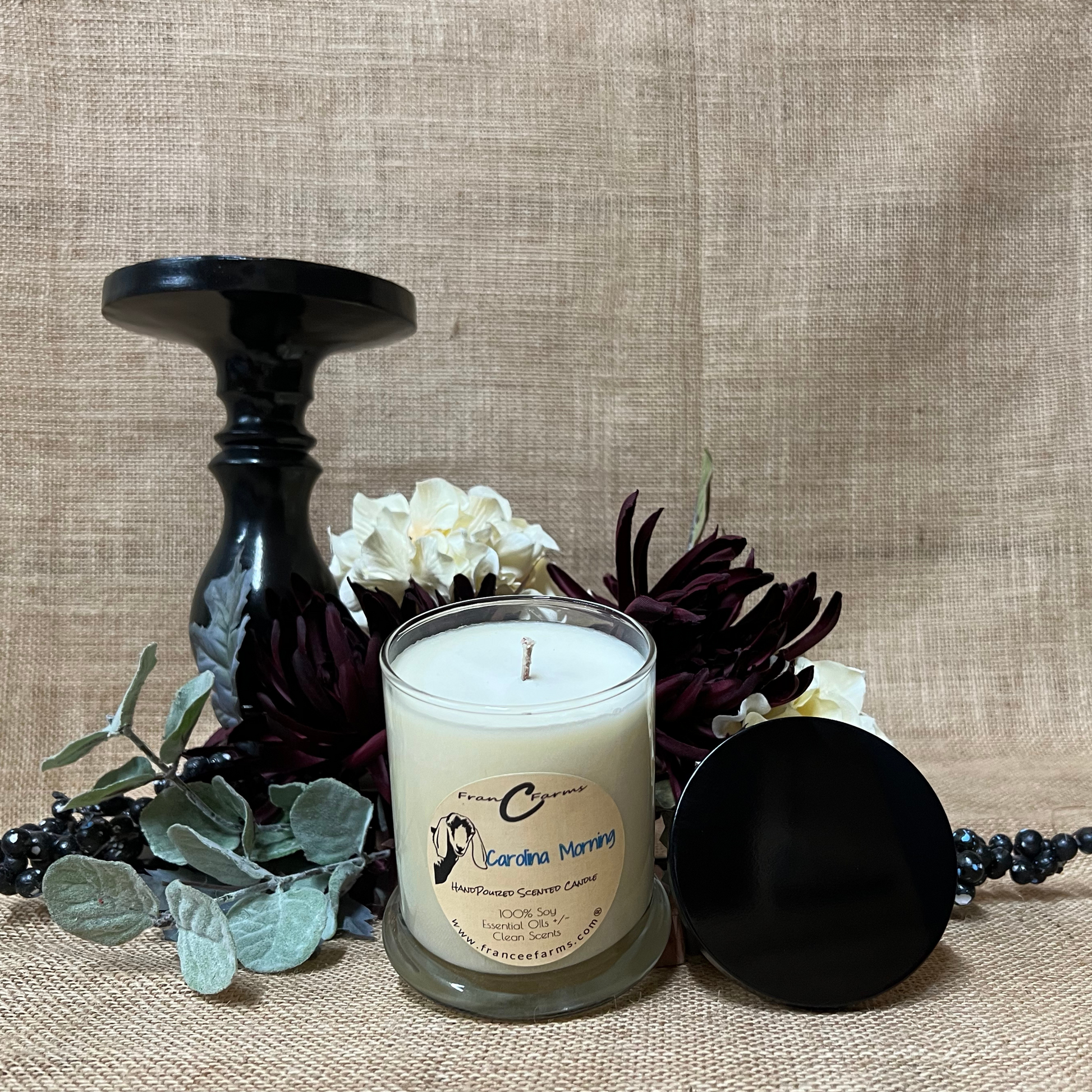 100% Pure Soy Wax Candle scented with fragrance and/or essential oils. This is a custom blend only available by FranCee Farms in attempt to capture the fresh scent of morning. Our hand poured candles that are balanced to throw a clean scent while burning evenly and efficiently. 3 hour initial burn. This candle will burn approximately 100 hours.