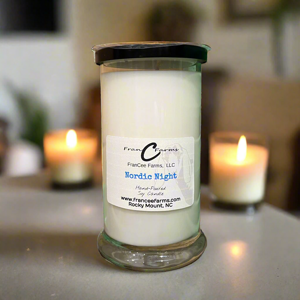 Visions of snow-covered pines and arctic winds filled our minds when we created Nordic Night fragrance oil. An outdoor, wintery scent, Nordic Night bottles a winter’s night chill with top notes of eucalyptus and lavender. Resinous pine is at the heart of this scent, and it rests on an herbal, woody base of rosemary, cedar, and oakmoss.