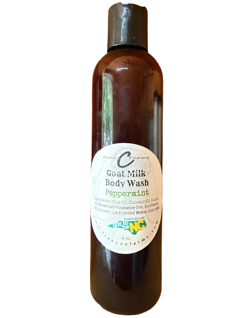 Our Hand -poured Goat Milk Body Wash is made only the finest ingredients and essential oils. The milk comes from our own Goats, which are milked and cared for daily. This peppermint body wash is moisturizing and rich. It has been very popular.