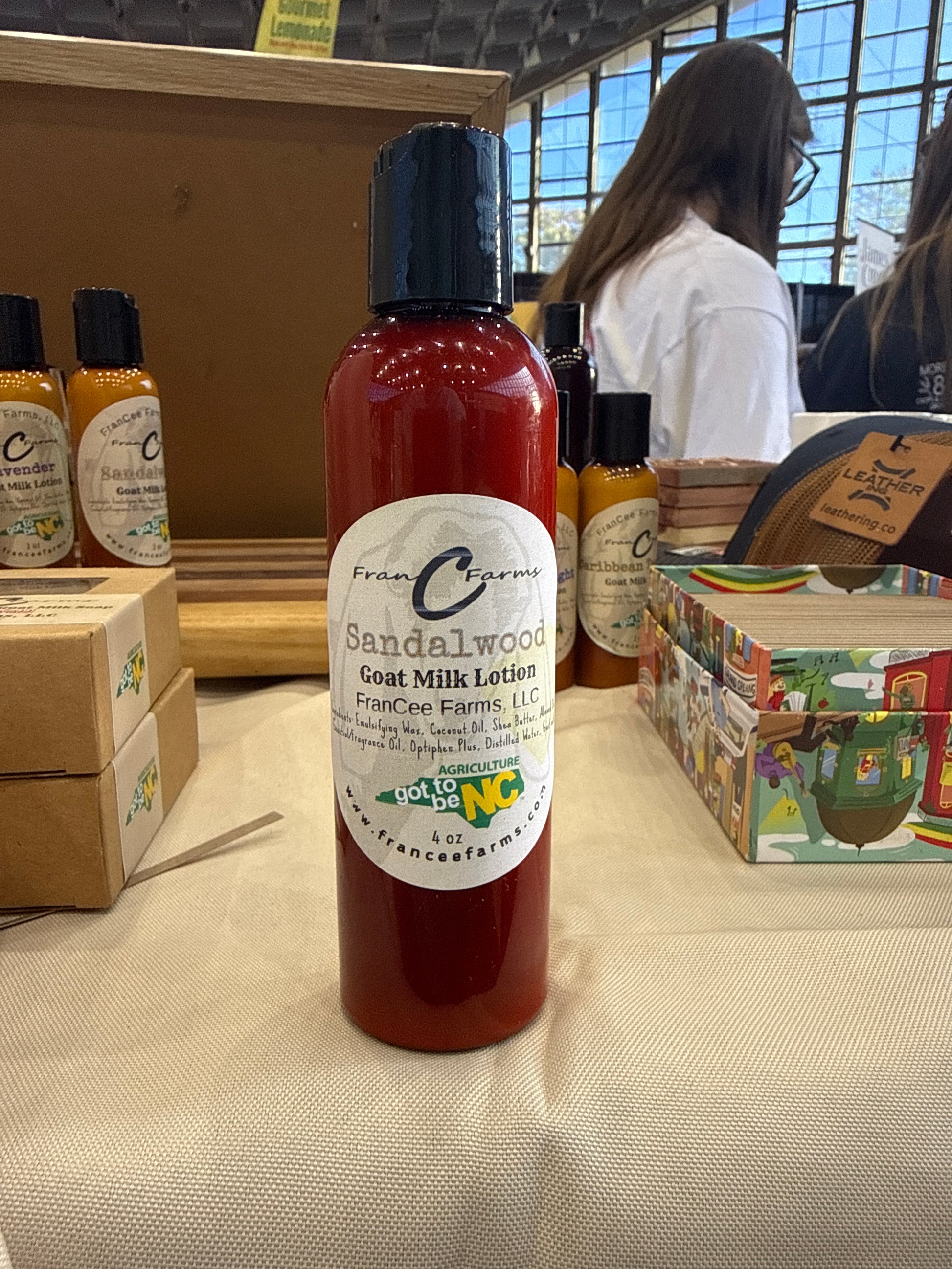 Sandalwood Goat Milk Lotion. Light, subtle, and a favorite for many. If you like natural, earthy fragrances, you will love this! carries all of the benefits of goats milk products. High in vitamins A & D, it is very moisturizing and leaves your skin feeling refreshed and revitalized! With Sandalwood Goat Milk Lotion, you'll enjoy the moisturizing effects of vitamin-rich goat milk without any harsh fragrances. The perfect choice for those seeking a natural and nourishing skin care routine.