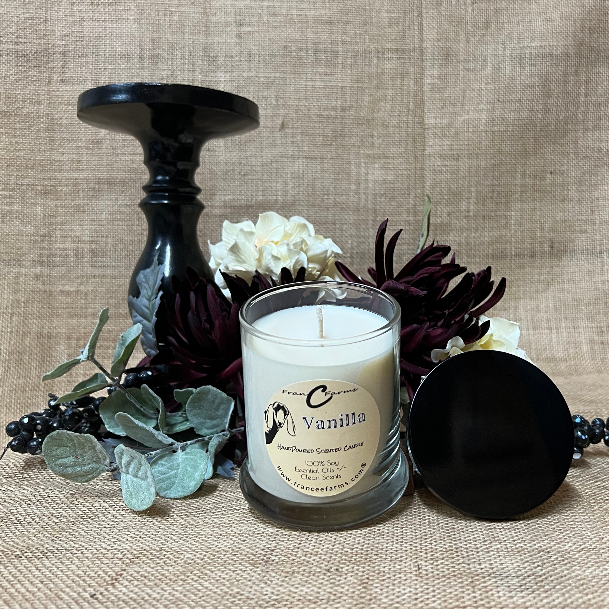 100% Pure Soy Wax Candle scented with fragrance and/or essential oils. Our hand poured candles that are balanced to throw a clean scent while burning evenly and efficiently.